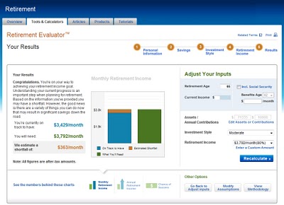 The Retirement Evaluator tool allows investors to assess whether they are on track to meet their retirement goals. We answered questions such as our current age, expected retirement age, current and future saving levels, social security expected benefits, investment risk profile, expected annual investment returns and desired spending levels in retirement. There are many free retirement calculators available online but we find that the Merrill Edge retirement calculator is one of the better ones out there. We tested the tool by entering our own information while using rather conservative estimates. We think we are in pretty good shape for our long off retirement: